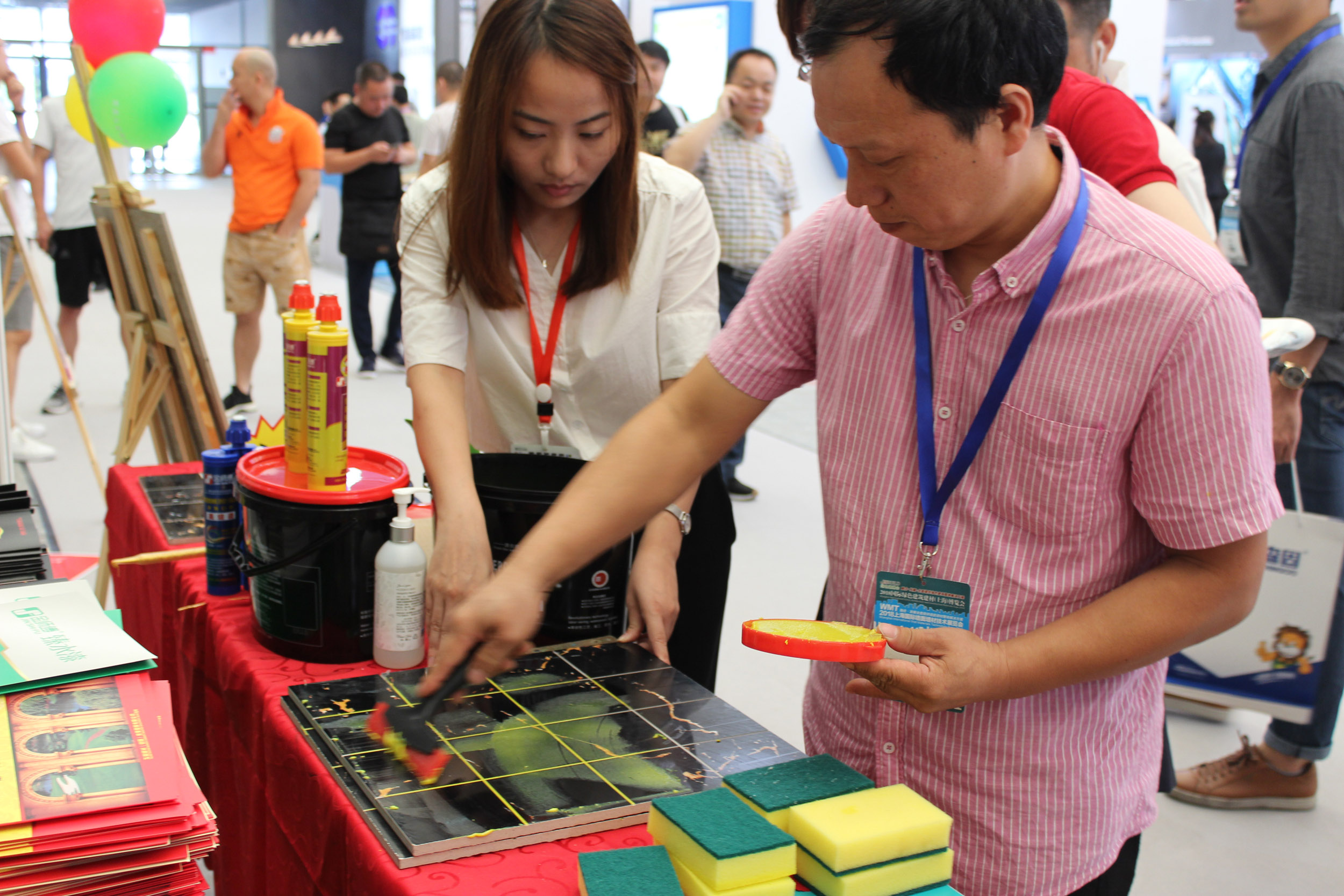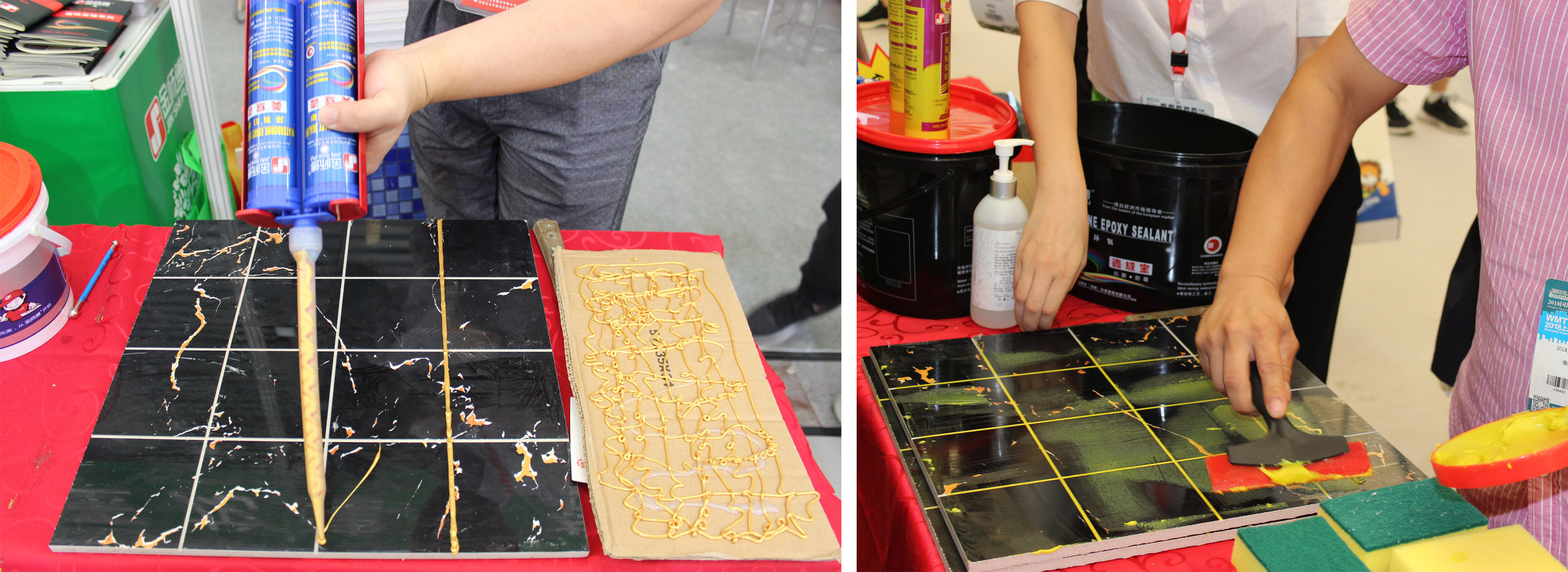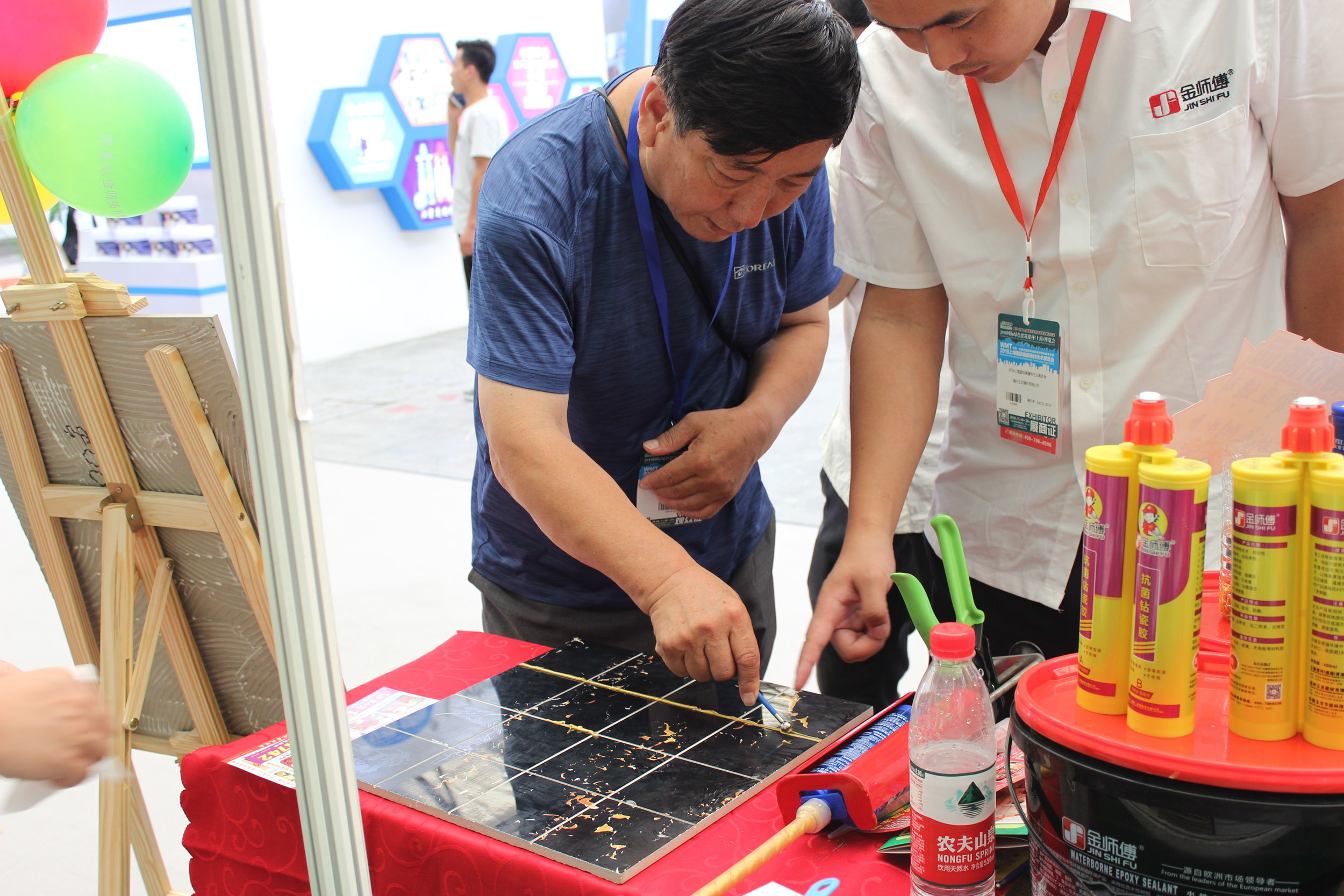 玉龍建材作為福建省《DB35-T 1668-2017室內(nèi)裝飾裝修用環(huán)氧樹脂嵌縫劑》標(biāo)準(zhǔn)制定單位,是美縫及輔材行業(yè)的領(lǐng)跑者。很多友商慕名而來,現(xiàn)場十分火爆。