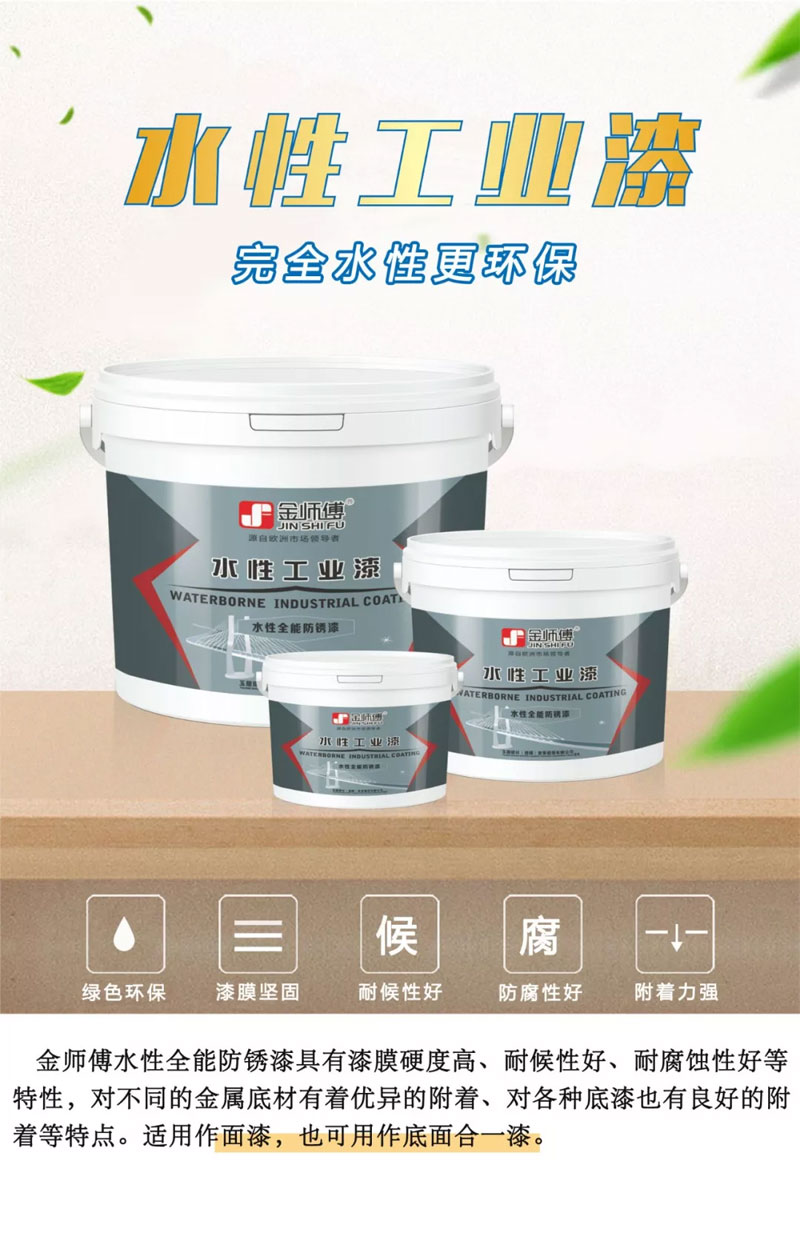 金師傅水性全能防銹漆是一款適用度極廣的一款新產(chǎn)品,它不僅能替代傳統(tǒng)的油漆、調和漆、還能作為乳膠漆使用。