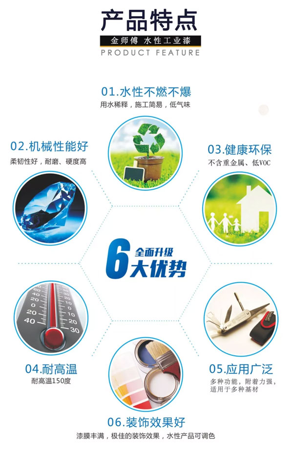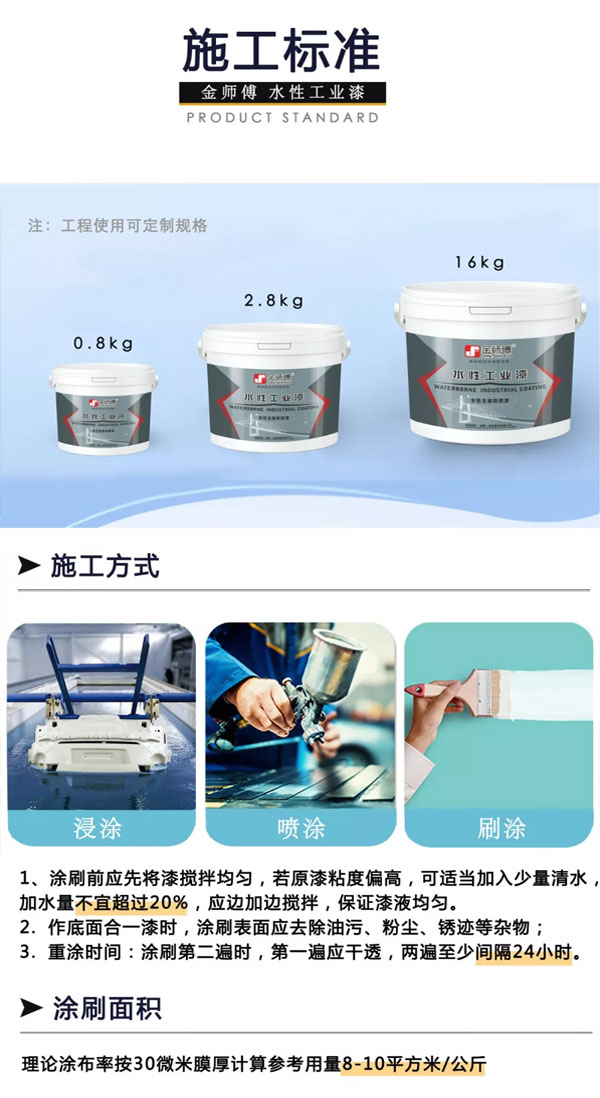 水性工業(yè)漆是一種以水為溶解介質的涂料,具有無毒環(huán)保、無氣味、可揮發(fā)物極少、不燃不爆等優(yōu)點,是一種不用有機溶劑作為稀釋劑的綠色環(huán)保產(chǎn)品。