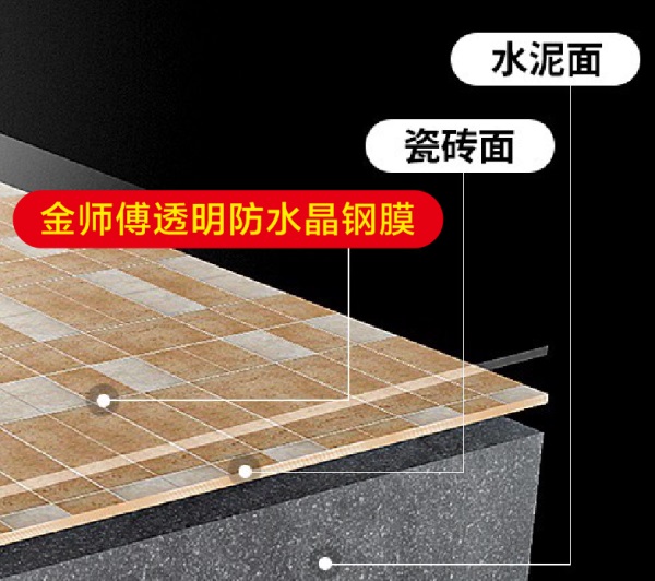 金師傅透明防水晶鋼膜是一款透明隱形防水,不影響美觀,還防滑易擦洗,解決普通防水膠時間長發(fā)黃、施工后遇水起皮脫殼、施工不凝固等問題。