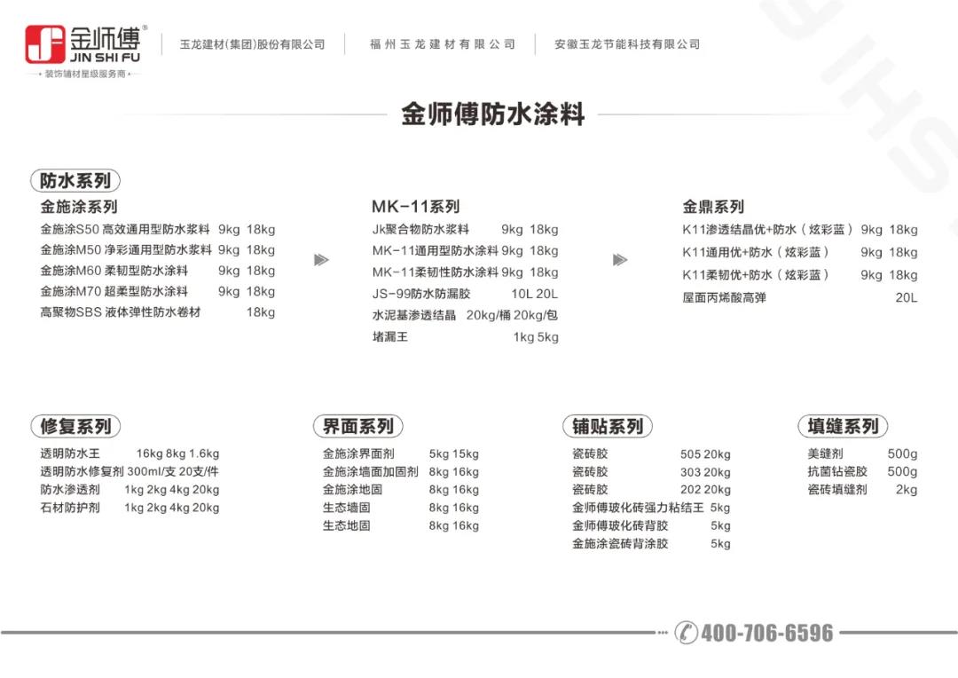 墻面滲水,潮濕發(fā)霉、墻皮脫落等問題層出不窮,防水也成為裝修基礎施工關注的難點重點。金師傅打造“金施涂”系列防水體系,用實力防水品質(zhì)助力家裝防水施工,確保家裝質(zhì)量無憂,滿足客戶防水需求。