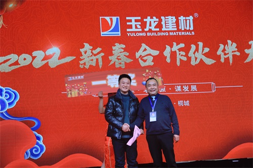 玉龍建材2022新春合作伙伴大會(huì)于正月初五在安徽桐城圓滿(mǎn)舉行,本次大會(huì)的主要目的是感恩新老客戶(hù)在過(guò)去一年對(duì)玉龍建材的大力支持和厚愛(ài),更有對(duì)未來(lái)合作的無(wú)限期待,同時(shí)感謝全體員工過(guò)去一年的努力和付出!
