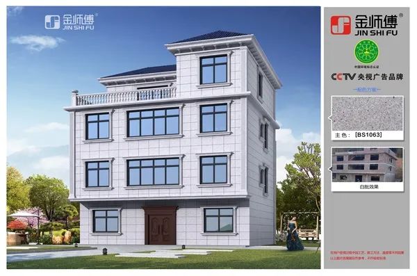 為了讓多彩涂料噴涂效果更接近石材,原則上可采用與石材一樣的分格,比如陰陽(yáng)角分格、窗口分格、樓沿分格。但考慮到石材的局限性,水包砂分格可以不用在陰陽(yáng)角部位進(jìn)行分格,建議可在窗口側(cè)面必須進(jìn)行分格,并注意盡量不要出現(xiàn)小塊、小邊的現(xiàn)象。